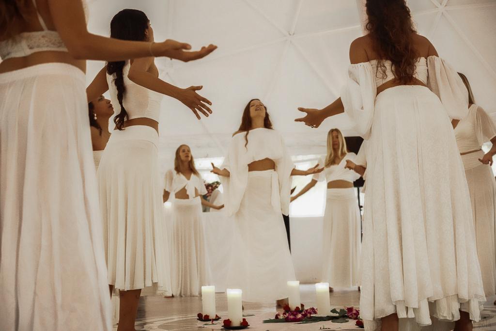 All of my intensive studies, initiations, curiosity, journeys into different realities and experiences over the last few decades, set a trajectory in motion toward what would become the birth of this new lineage. Originally it was a simple traveling school of dance, where I’d open courses wherever I happened to be traveling. Eventually it took on a life of its own, and became this new lineage of embodied spirituality which draws from wisdom of the ancient world, yet is particularly relevant for women of today. Ultimately the practices contained in this work are an invitation to a mass collective shift in consciousness, and a lifestyle choice for each participant. Through this learning community and sisterhood, thousands of women have been served to step into their sovereignty and truth, initiated into their ancient-future innate power.
