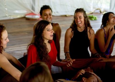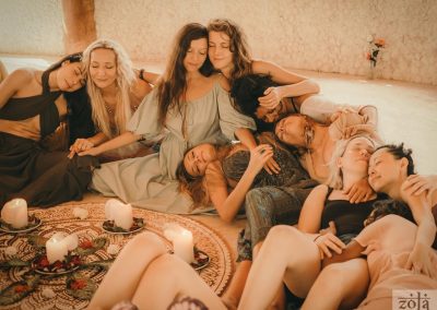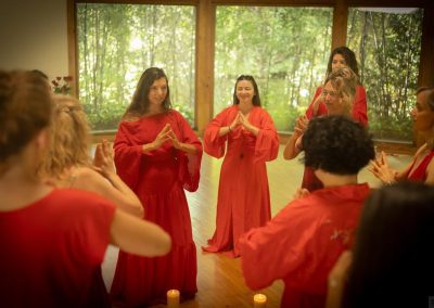 This training touched so many parts of me. I am physically stronger and trust in my body’s innate capacity to heal (I have been dealing with body pains for 5 year and feel good now). I am now much more in touch with my feminine side and my spirituality, I feel a deeper connection and love for the divine, the elements, the earth, humanity, the Mystery, all that is alive, the cosmic powers… Prior to the training I was stuck in many aspects of my life: my work, my relationship, my creativity. Can I say that I am transformed? Maybe more that I have return to my true self: playfyll, curious, more vibrant. I have more trust in myself! My love for dance and movement has returned after a period of stagnation. I feel the shift in my intention as a teache/leader. I am inspired by Zola’s teaching and work, the wonderful women I met, and the community. I believe I will be living a more authentic life. I am taking home a new commitment to myself, new practices that include the nurturing of my feminine, altar making, prayers, different ways to meditate, I could have used another month of this glorious training. Considering the amount of material we received this was not very long.”